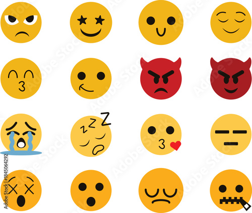 © create dream , Fototapeta premium 16 ICON FILE, Sad smile face icons set. . Funny vector sticker, social media mood, emotion and feeling chat element.