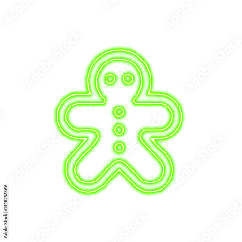 Obraz premium Icon gingerbread man from the flow of energy of green color. Shimmering neon