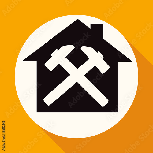 Obraz premium Icon house on white circle with a long shadow