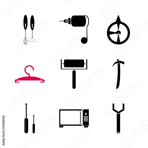 © Orxan, Fototapeta premium icon Instruments And Tools with compas, fixing, colored, wrench and tool