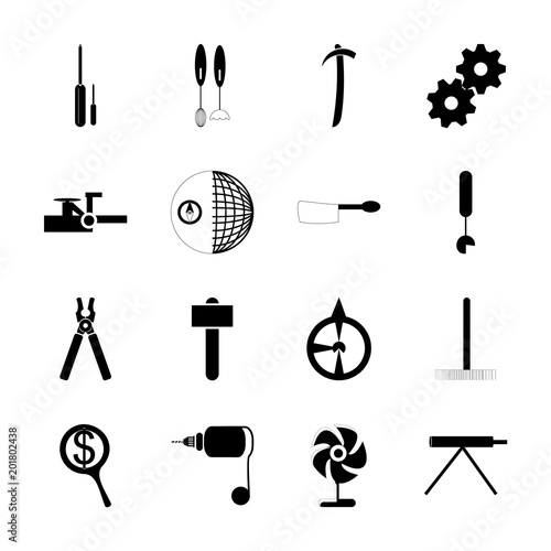 © Orxan, Obraz premium icon Instruments And Tools with vapour, hammer, sing, flat and garden