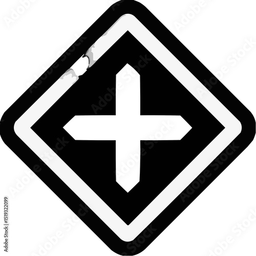 Fototapeta premium Icon of a black and white plus sign in a diamond shape