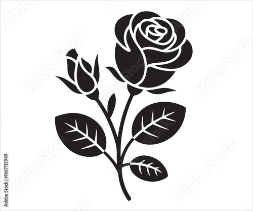 Obraz premium Icon of a blooming rose and bud, symbolizing natural beauty and elegance.