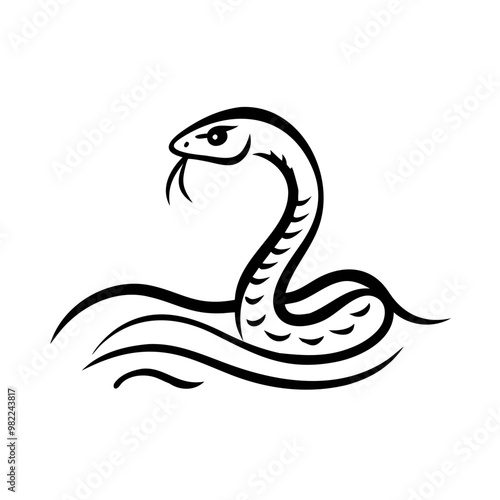Naklejka premium Icon of a snake emerging from water, sleek design on a white background, copy...
