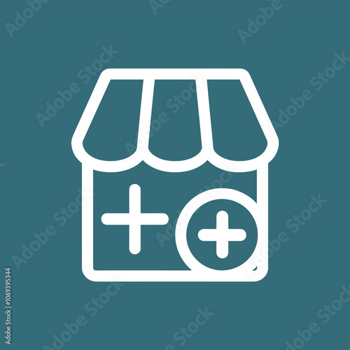 Obraz premium Icon of a store with a plus sign indicating addition, set against a teal...