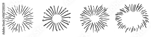 Fototapeta premium Icon of a vintage sunburst. Hand drawn illustration sign of an explosion. Element Fireworks. Black Rays.