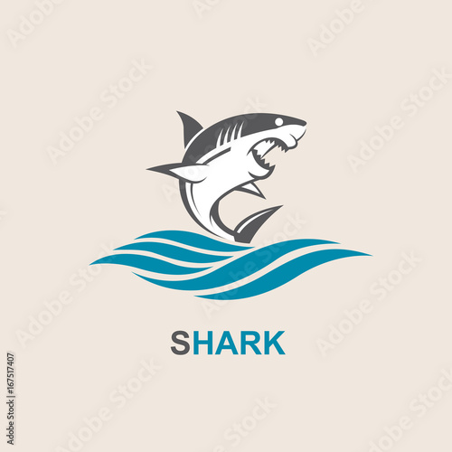 Fototapeta premium icon of angry shark with sea waves