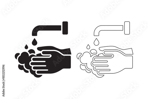 © Laboni, Obraz premium Icon of hands being washed under a running faucet with soap