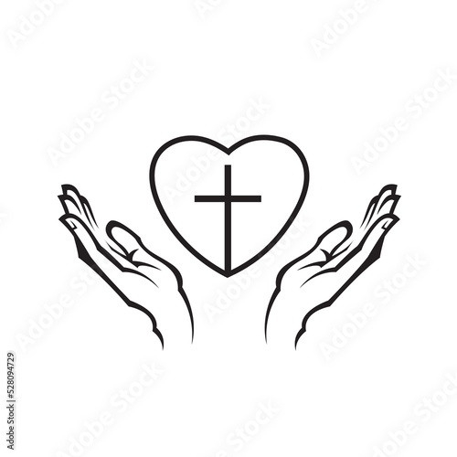 © Alexkava, Obraz premium icon of heart, cross and hands isolated on white background