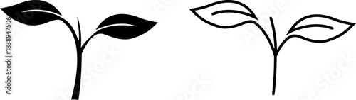 © Рудой Максим, Naklejka premium Icon representing two simple plant designs with leaves shown in black and white against a plain background