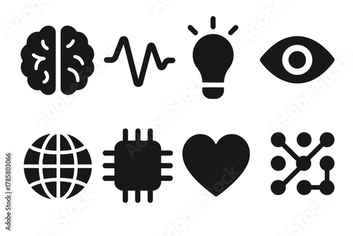 Obraz premium Icon set: brain, heart, lightbulb, technology, connectivity, vision, circuit