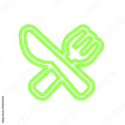 © Video Render, Fototapeta premium Icon utensils alt from the flow of energy of green color. Shimmering neon