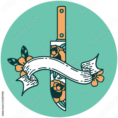 Fototapeta premium icon with banner of a dagger and flowers