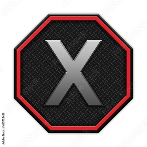 © Ian, Fototapeta premium Icon with letters and symbols in 3D octagon style with modern dark design