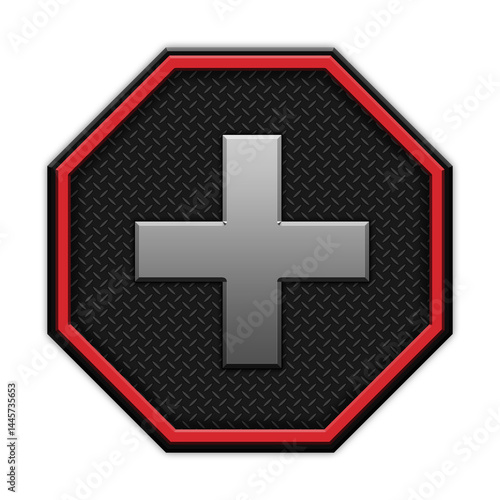 © Ian, Fototapeta premium Icon with letters and symbols in 3D octagon style with modern dark design