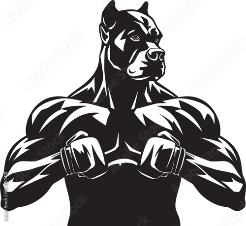 Fototapeta premium Iconic Athleticism Black Logo with Boxer Dog Mighty Mascot Black Boxer Dog...