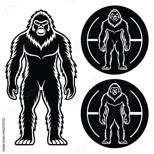 Obraz premium Iconic bigfoot sasquatch creature in black and white silhouette style