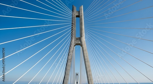 Fototapeta premium Iconic Cable-Stayed Bridge Soaring Against A Vast Blue Sky
