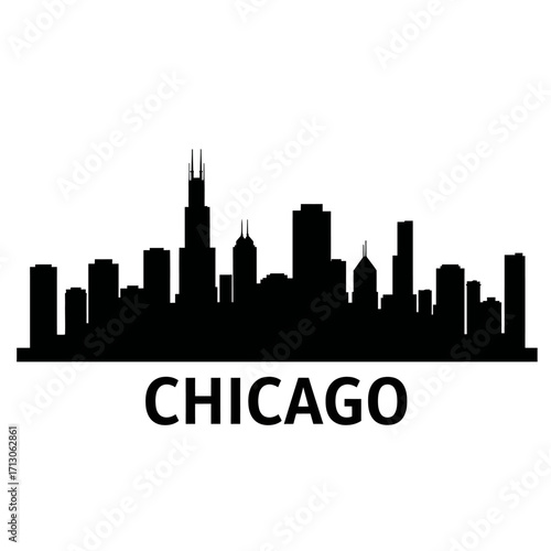 Naklejka premium Iconic chicago skyline silhouette cityscape urban landscape famous buildings...