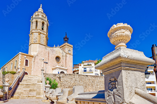 Fototapeta premium Iconic church of St. Bartholomew and St. Thecla. Sitges.