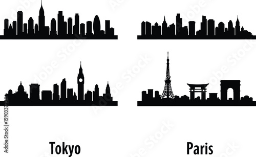 Obraz premium Iconic City Skylines Tokyo, Paris, and More - A Collection of Stunning Cityscape Illustrations