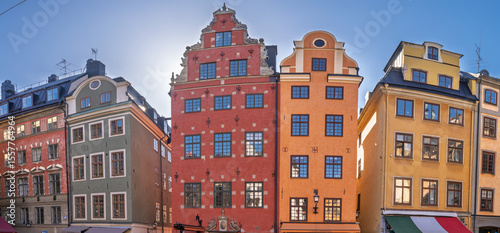 © Dreamnordno, Fototapeta premium Iconic colorful buildings at Stortorget square in Stockholm’s Old Town