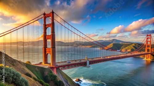 © suchetpong, Obraz premium Iconic Golden Gate Bridge connecting San Francisco and Marin County Macro