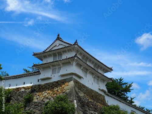 Fototapeta premium Iconic Himeji Castle: Majestic Beauty in Hyōgo Prefecture, Japan, Historical white castle in japan, a photo of the himeji castle in Himeji, a city in the Hyōgo Prefecture of Japan