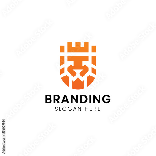 Fototapeta premium Iconic king lion castle logo.