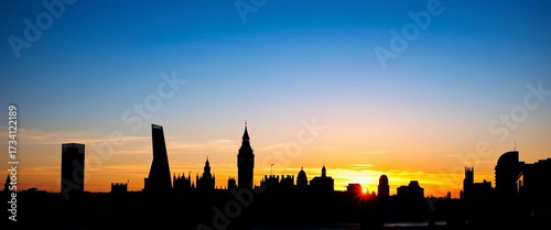 Obraz premium Iconic London skyline silhouette at sunset, featuring key landmarks, london...