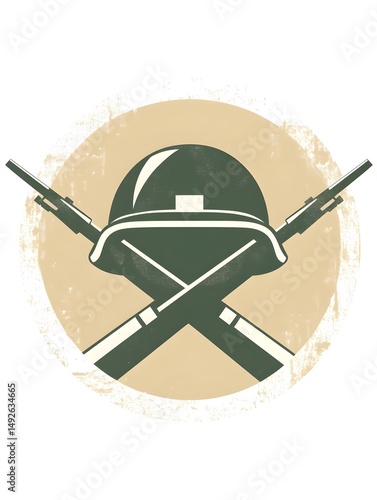 Obraz premium Iconic Military Emblem with Crossed Rifles and Helmet: Vintage Style Graphic...