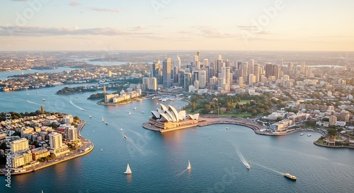 © Sadaqat, Obraz premium Iconic Sydney: Aerial View of the Opera House and Harbour Business District