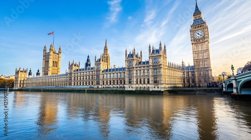Fototapeta premium Iconic view of the Palace of Westminster under a clear blue sky with vibrant...