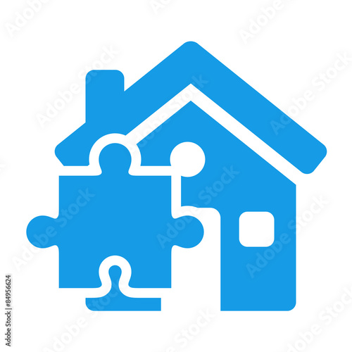 © teracreonte, Obraz premium Icono casa con simbolo puzzle azul
