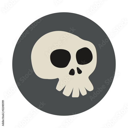 Fototapeta premium Icono plano caricatura de calavera gris en circulo color gris