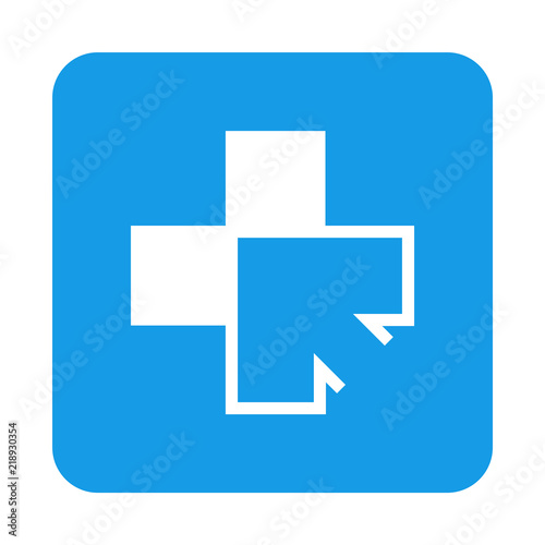 © teracreonte, Fototapeta premium Icono plano cruz sanidad con flecha en cuadrado azul