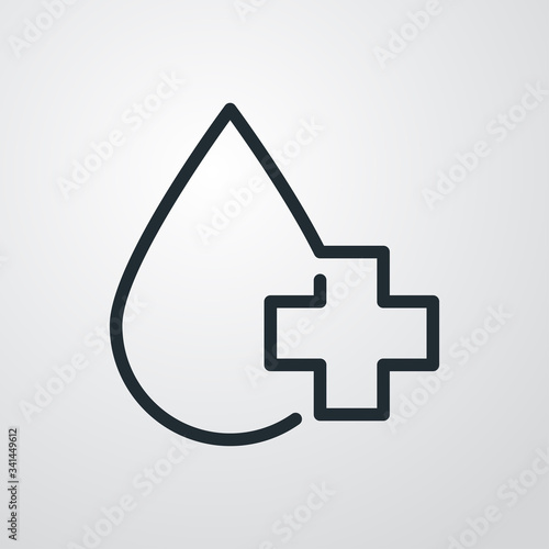 © teracreonte, Fototapeta premium Icono plano lineal gota con cruz en fondo gris