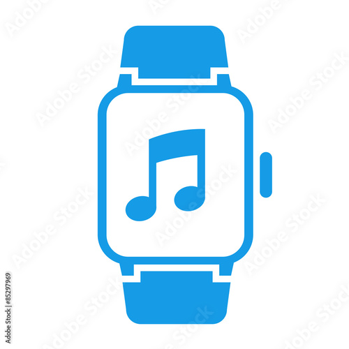 © teracreonte, Fototapeta premium Icono smartwatch musica azul