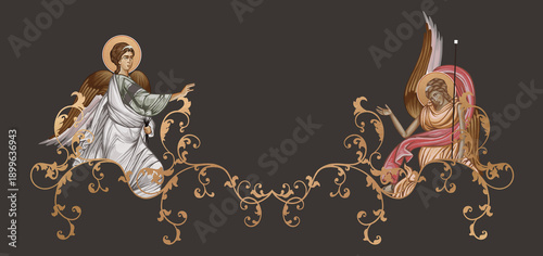 © Julia, Naklejka premium Iconographic Byzantine border with angels
