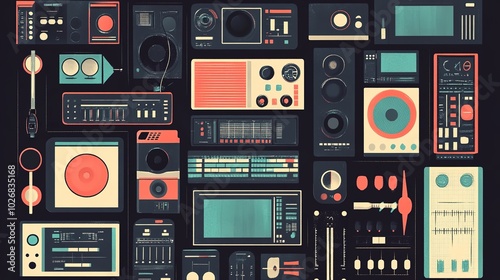 Obraz premium Iconography of a university radio station, featuring elements such as...