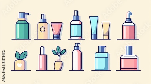 Fototapeta premium Icons and designs for beauty, body care, and cosmetics.