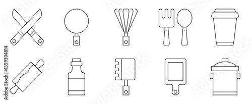 Obraz premium Icons Minimalist Outline of Common Kitchen Tools, Utensils, and Cookware on...