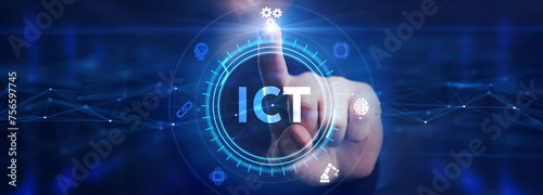 © photon_photo, Obraz premium ICT Information communication technology internet concept on virtual screen.