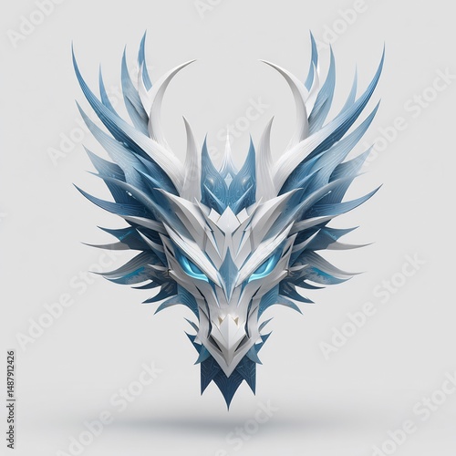 © Anjar Stock, Fototapeta premium Icy chromatic dragon head with glowing cyan eyes, mythical fantasy creature