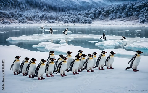 Obraz premium Icy Emissaries The Penguin Chronicles A Journey Through Frosty Realms and Charming Fellowship ai generated