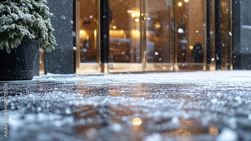 Fototapeta premium Icy Sidewalk in Front of Building Entrance on a Winter Day