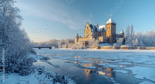 Fototapeta premium Icy winter landscape highlighting a centuries old castle