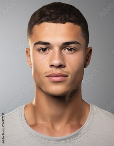 Fototapeta premium ID Photo: Young Latin Man in T-shirt for Passport 01