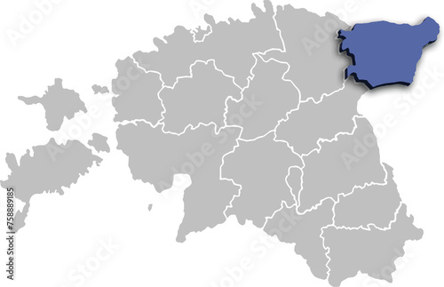 © WALDIR, Fototapeta premium IDA VIRUMAA COUNTY OR DEPARTMENT MAP STATE OF ESTONIA 3D ISOMETRIC MAP