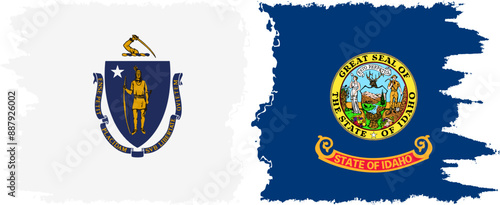 Fototapeta premium Idaho and Massachusetts states grunge brush flags connection, vector